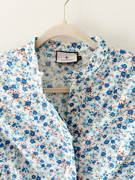 Tuckernuck Royal Shirt Dress in Bluebell Floral Ditsy Calico, Size Extra Small