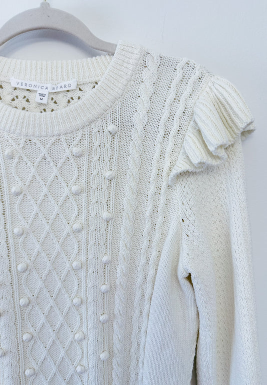 Veronica Beard Earl Crew Neck Cable Sweater, Size Medium