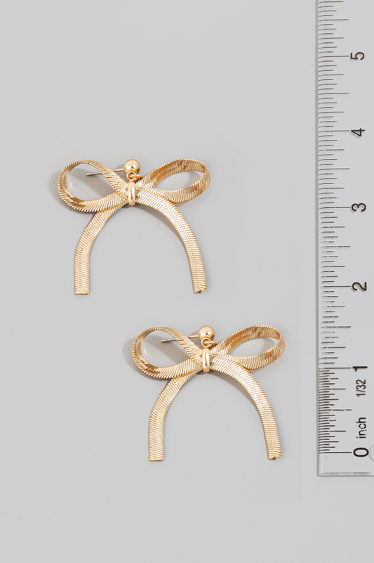 Flat Chain Ribbon Bow Dangle Stud Earrings