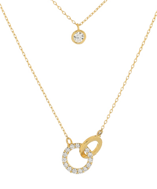 Two Layer Cubic Zirconia Linked Pendant Necklace