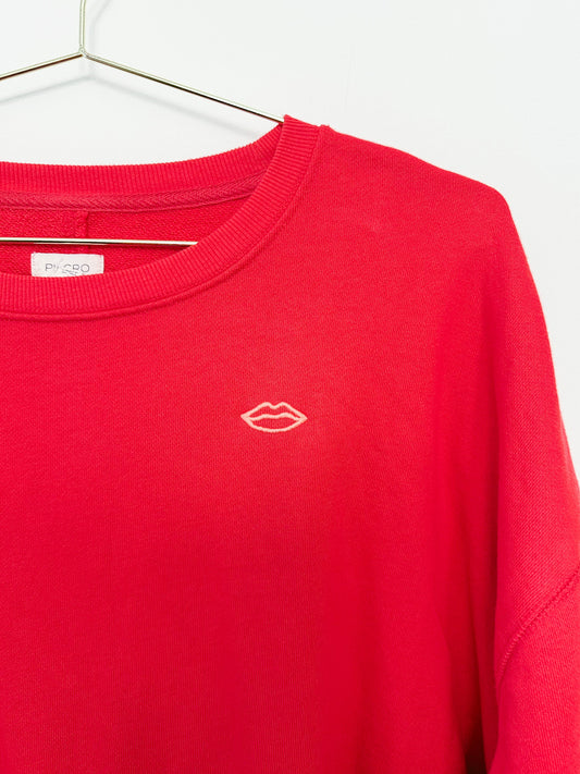 Pilcro Embroidered Sweatshirt in Red, Size Large