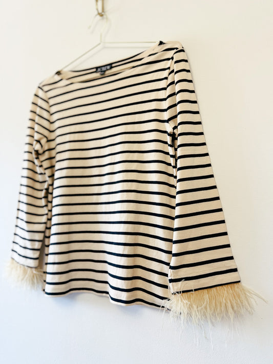 J. Crew Feather-Trim Long Sleeved Shirt in Stripe, Size Medium