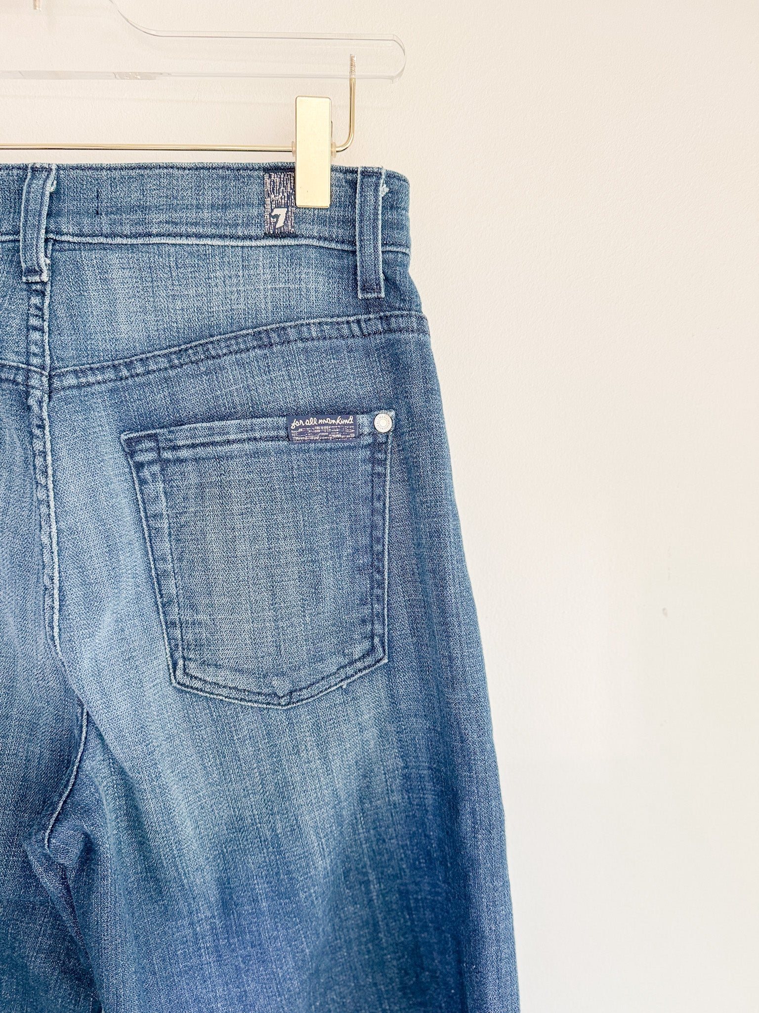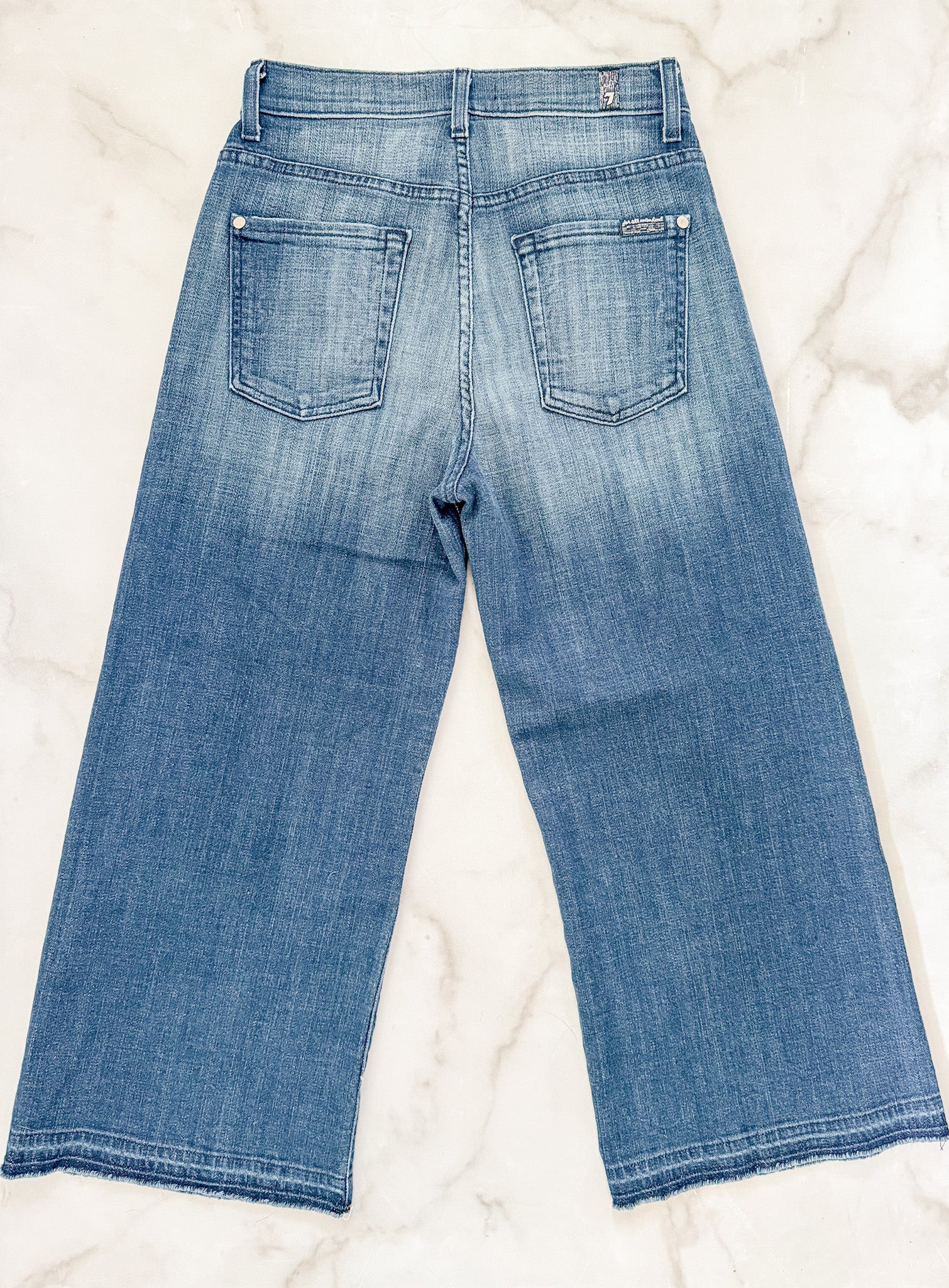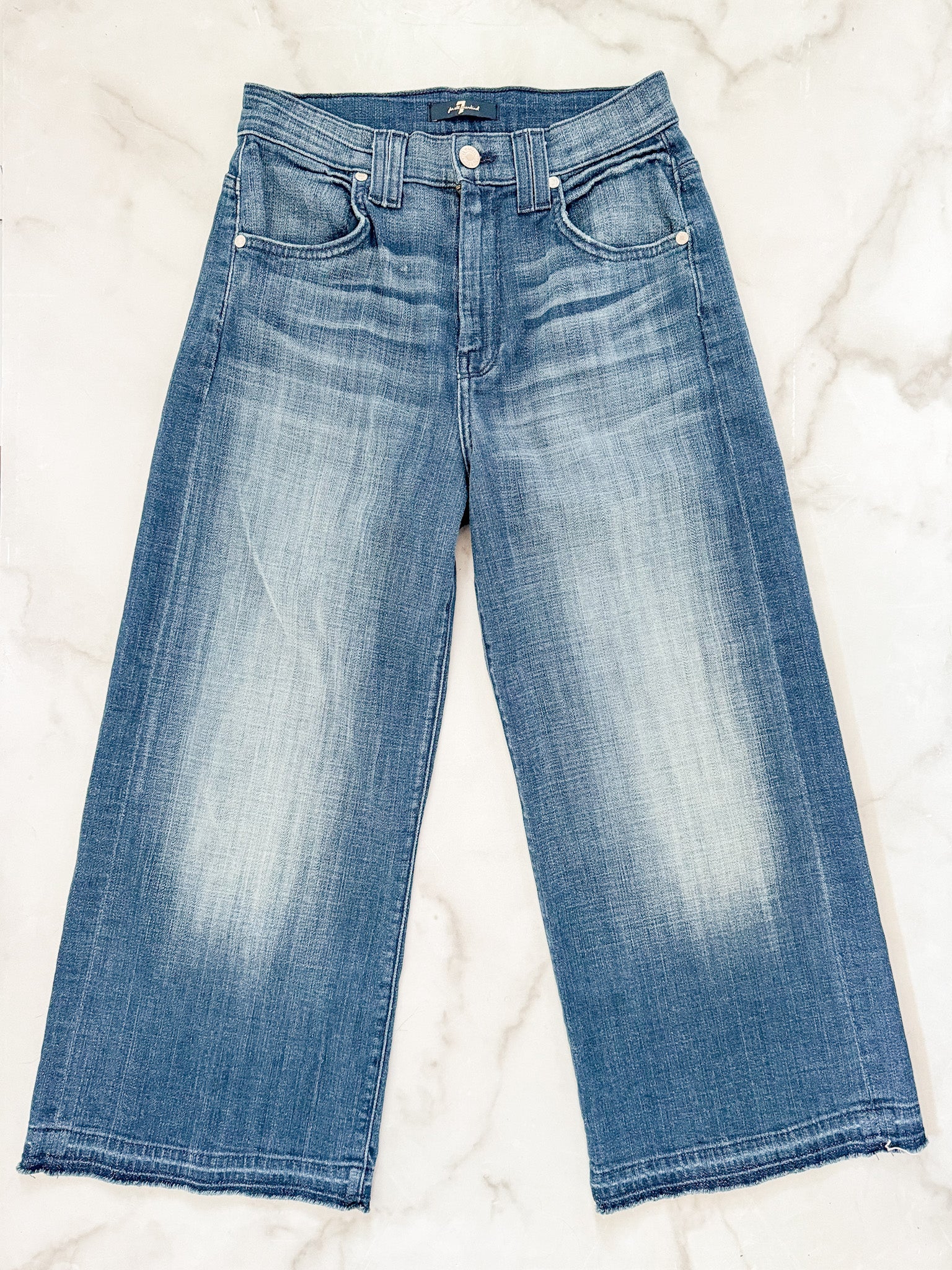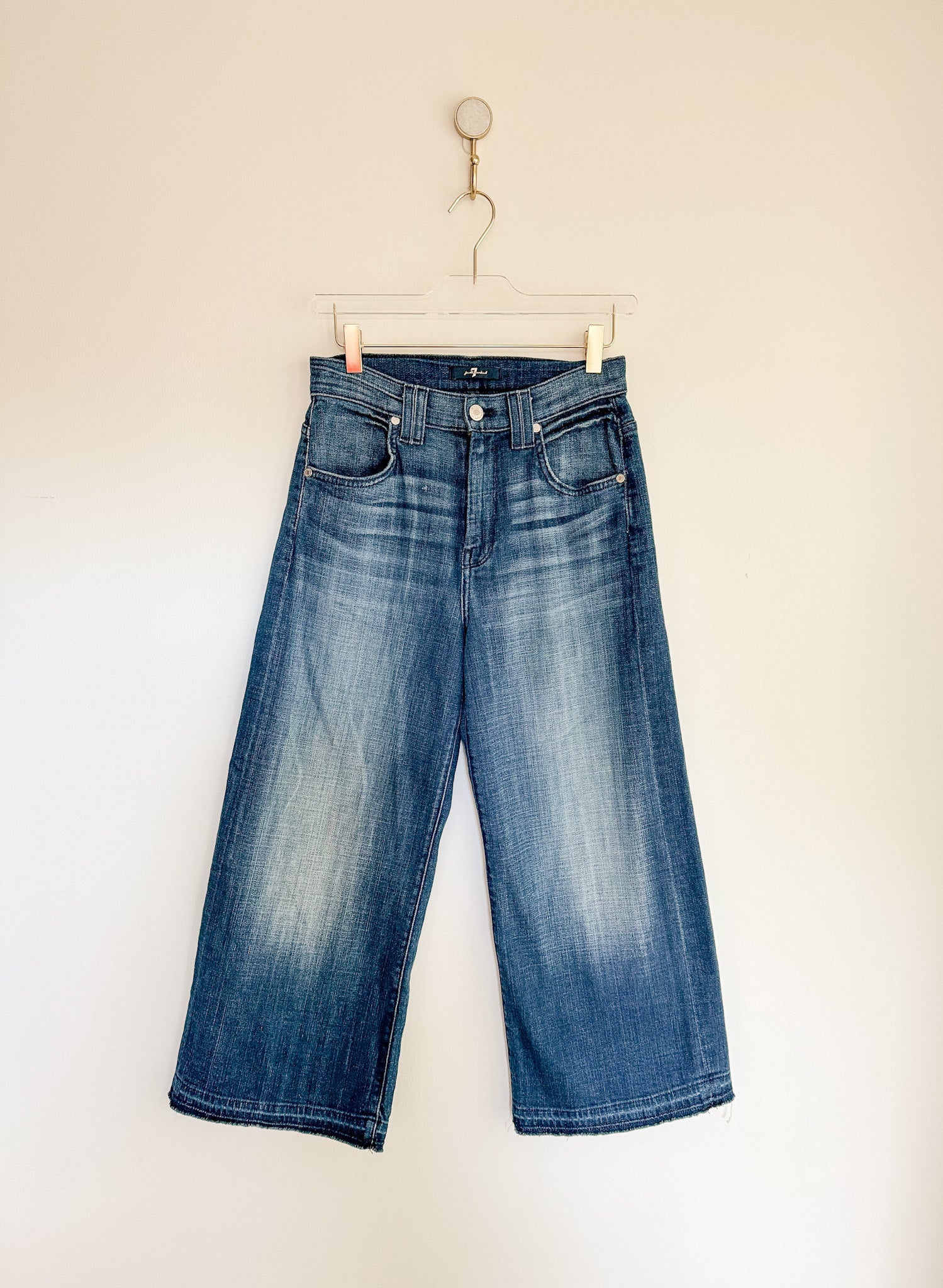 Elevate your look with this timeless pair of Wide Leg Crop Jeans from 7 for all mankind. Cut with a fashionable darker wash, the jeans are further enhanced with delicate whiskering, light fading and distressed details. Crafted from a soft and comfortable fabric, the jeans feature a stylish let down hem, making them the perfect pair of jeans for any occasion.