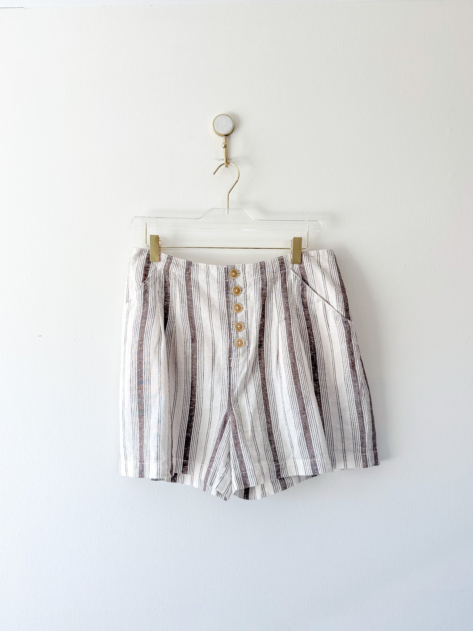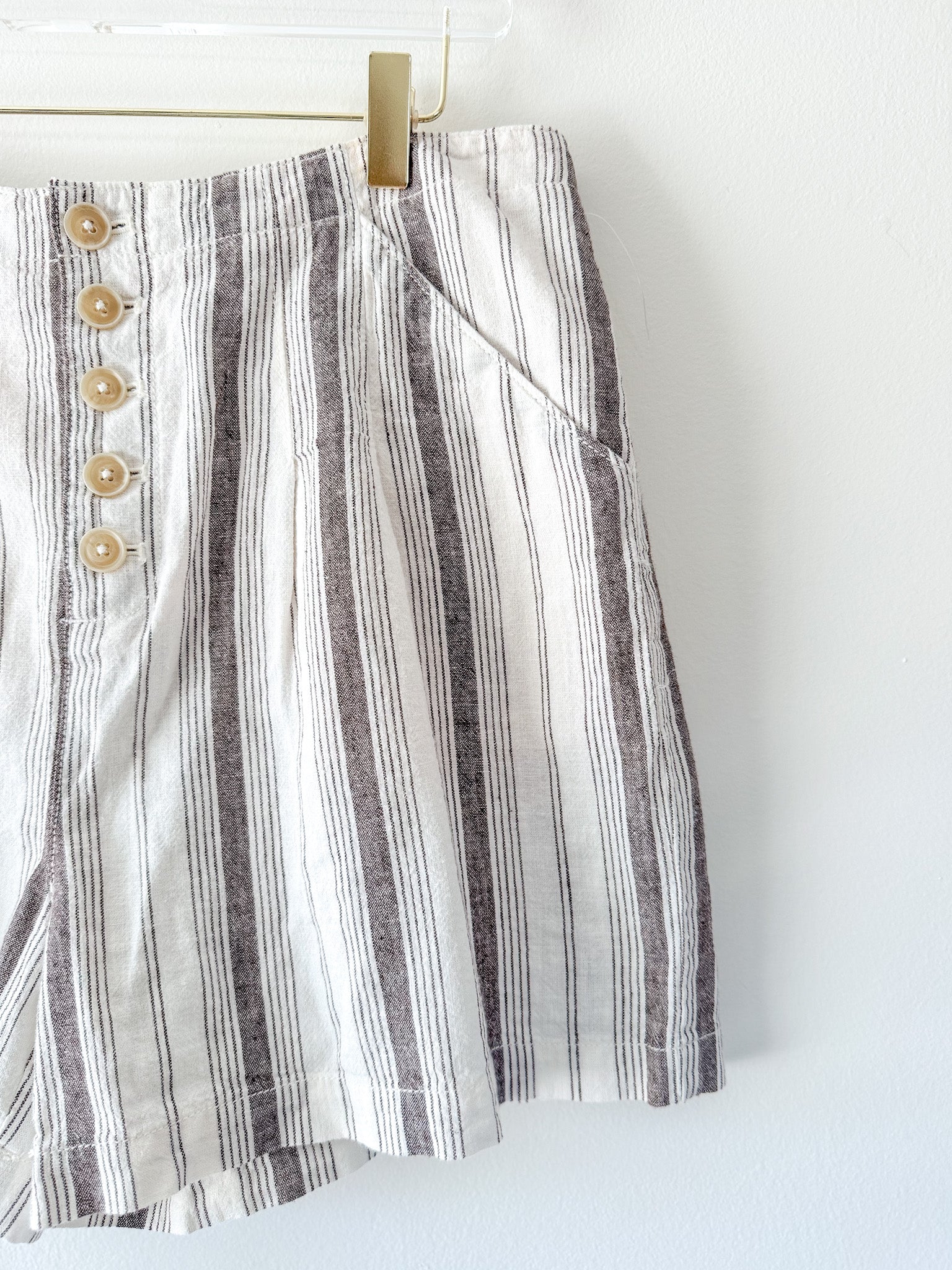 by Anthropologie White Striped Linen Blend High Rise Beachgoer Shorts, Size 6