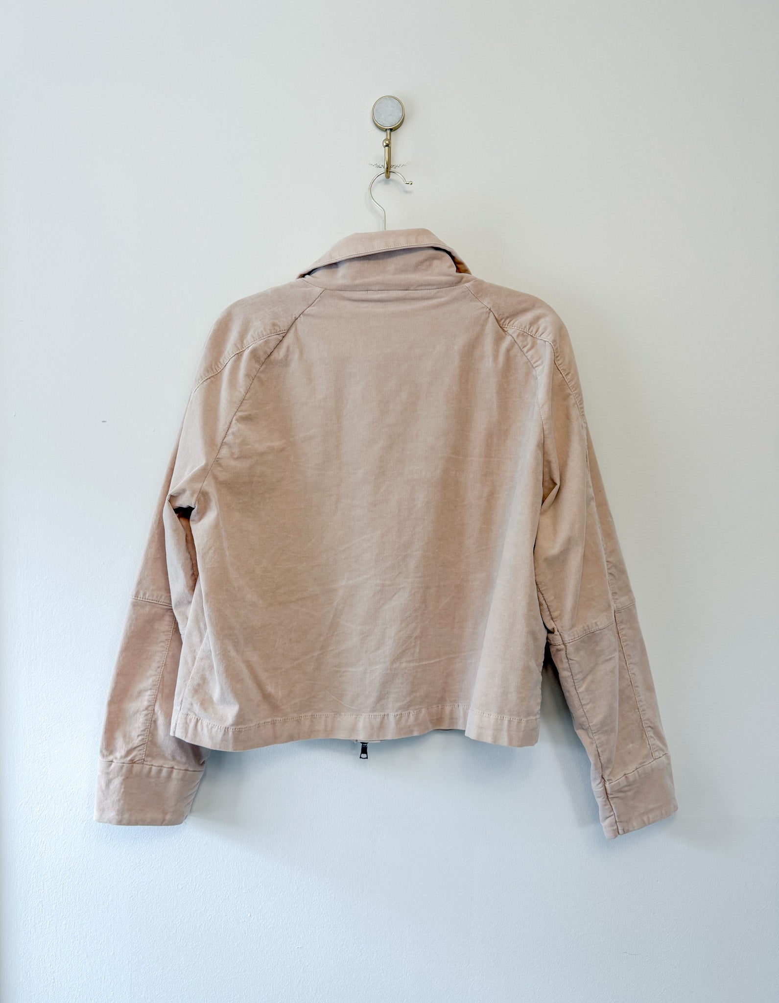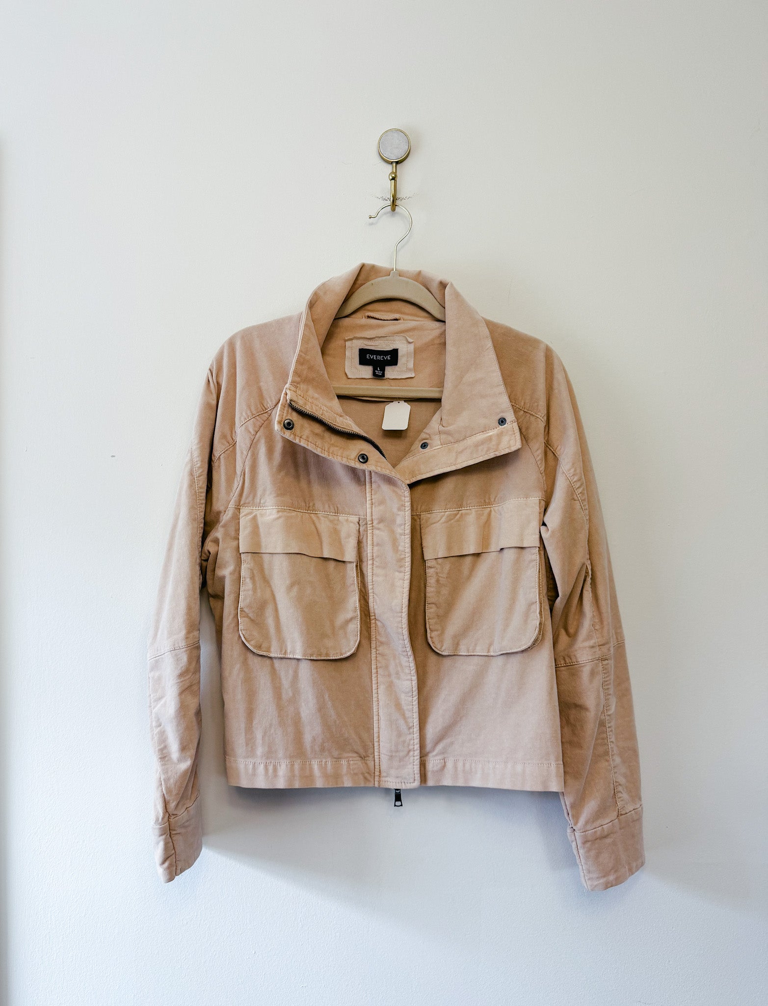 Chic with a utility-inspired edge, the Evereve Camp jacket features a slightly cropped silhouette with a front zip and snap closure, chest pockets, and seamed raglan sleeves.