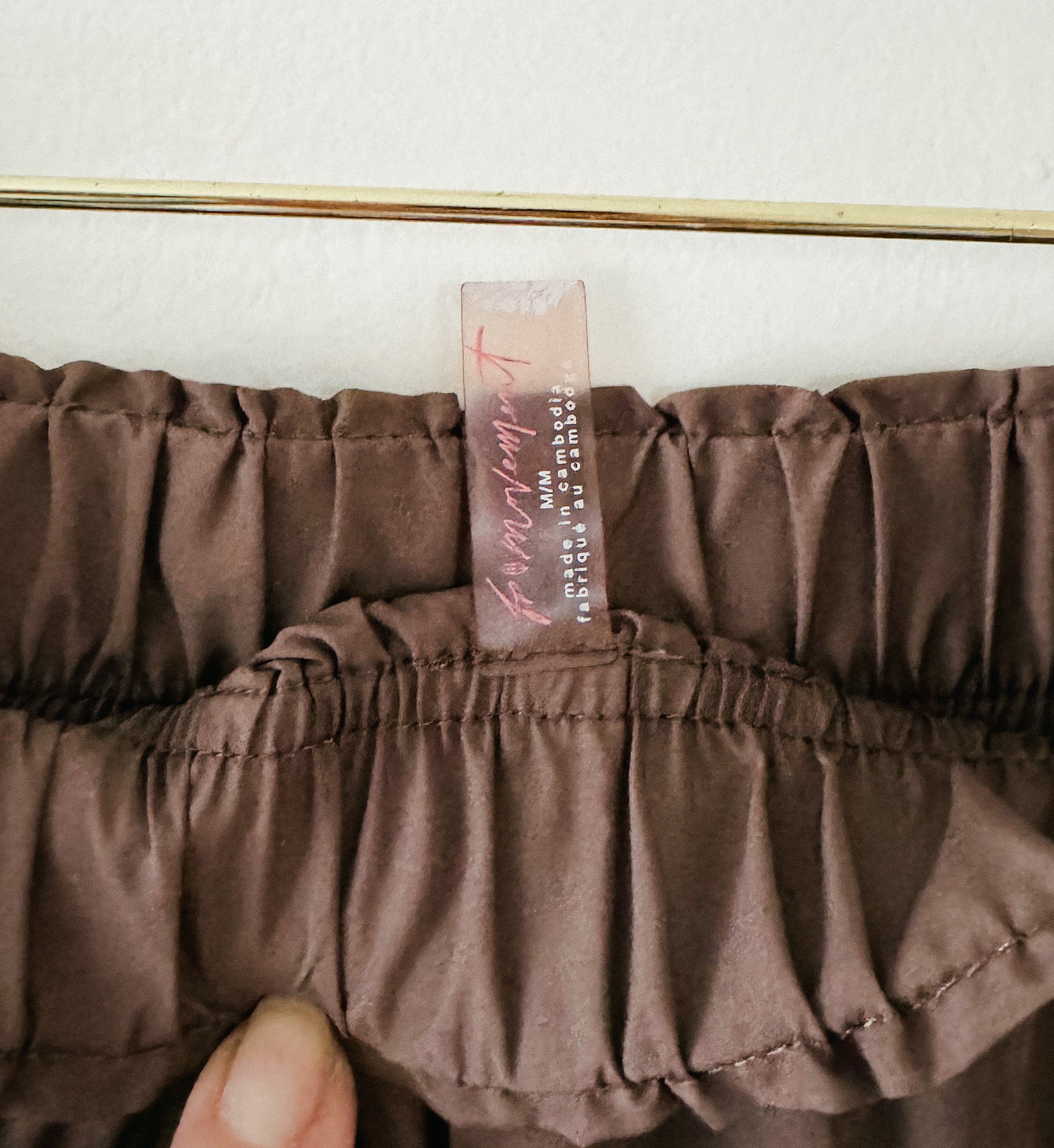 - Features: Lightweight and breathable fabrication, smocked elastic waistband, contrast seams, pleated side detail for added dimension