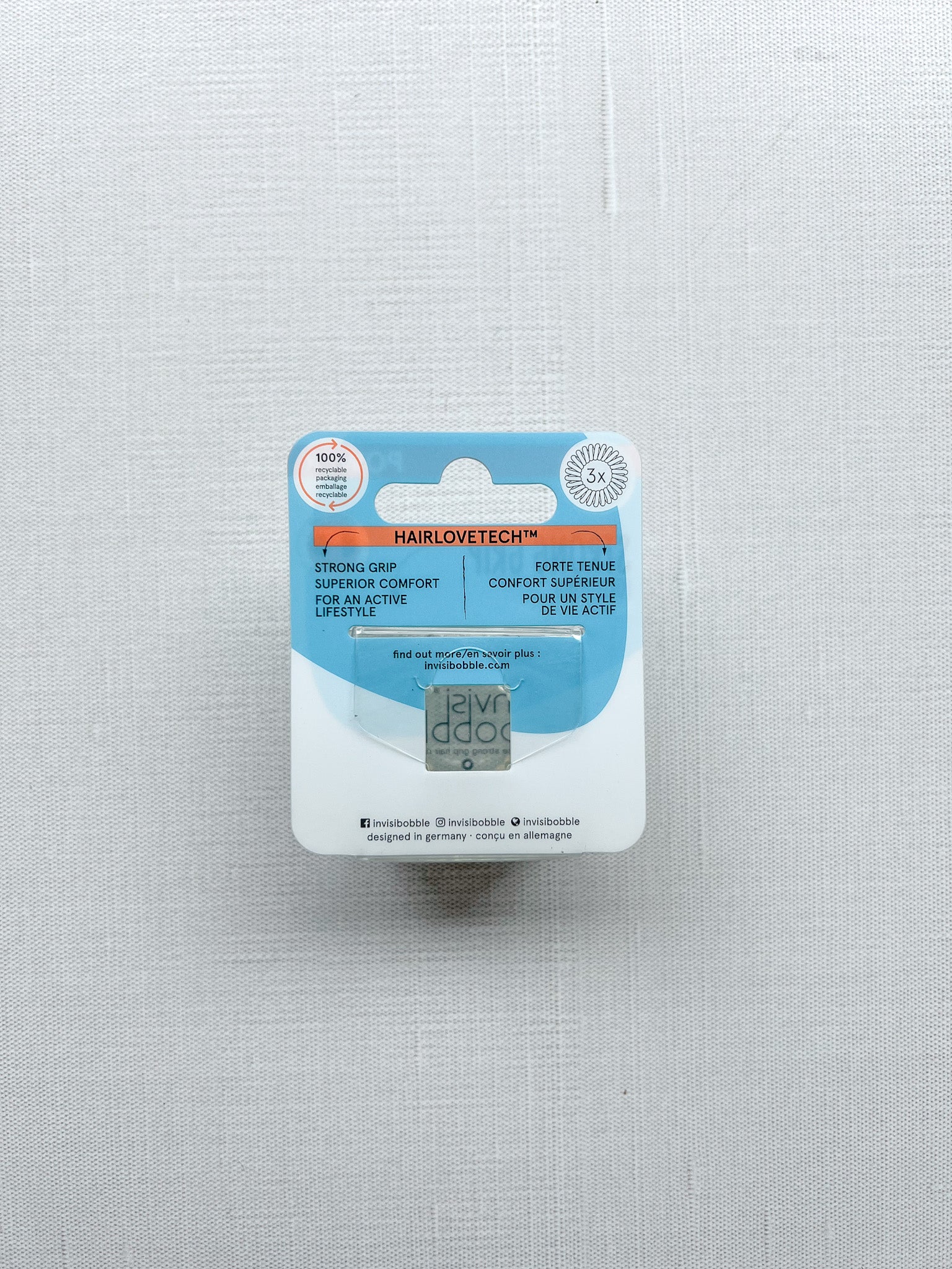 The invisibobble in crystal clear is the perfectly unseen neutral hair tie that gives great hold for everyday updos or workouts. Its spiral shape provides an extra strong grip during high-energy activities without creasing or discomfort. No absorbing of fluids and can be easily slid out of wet hair as well as dry without tangling.