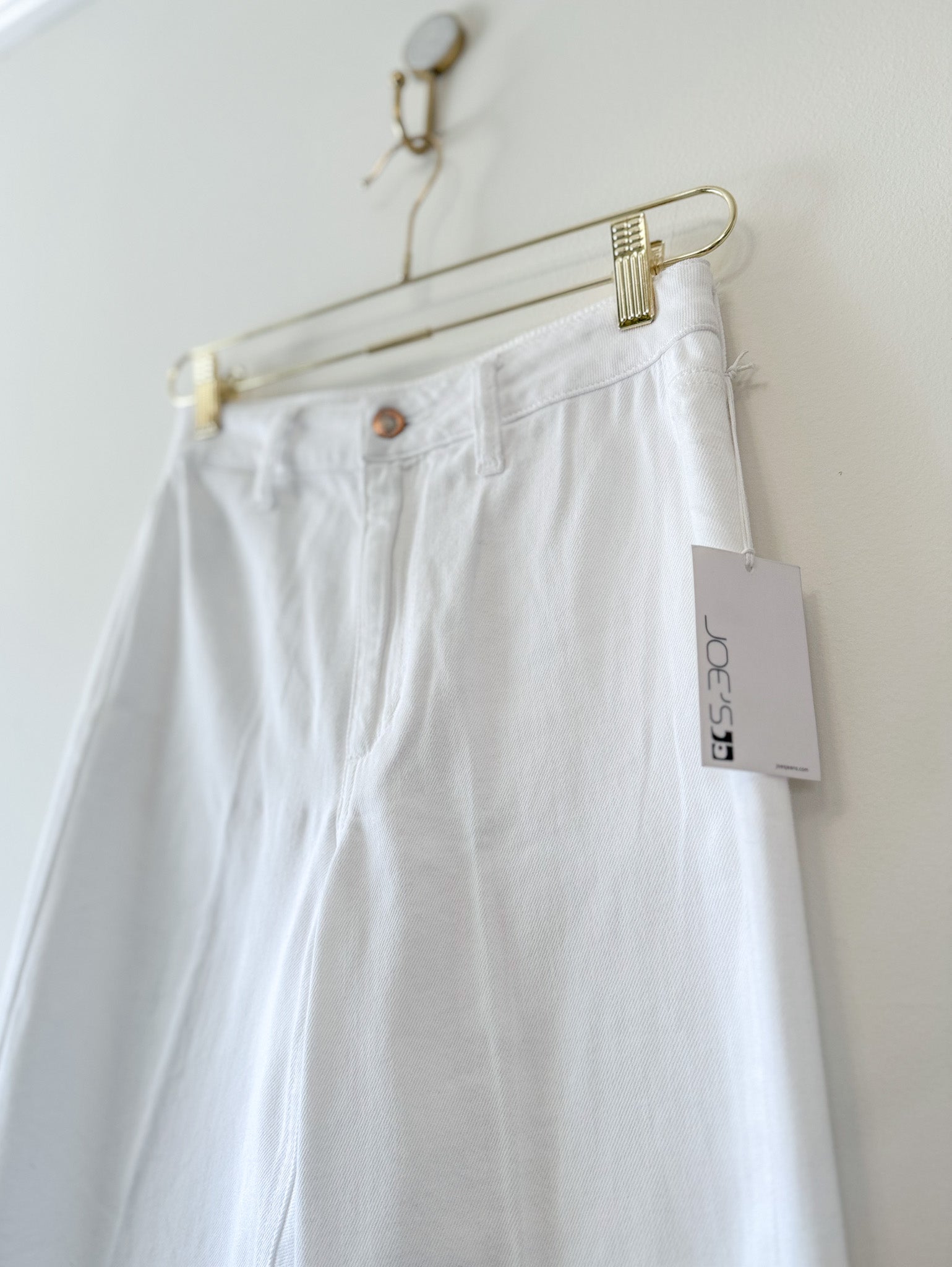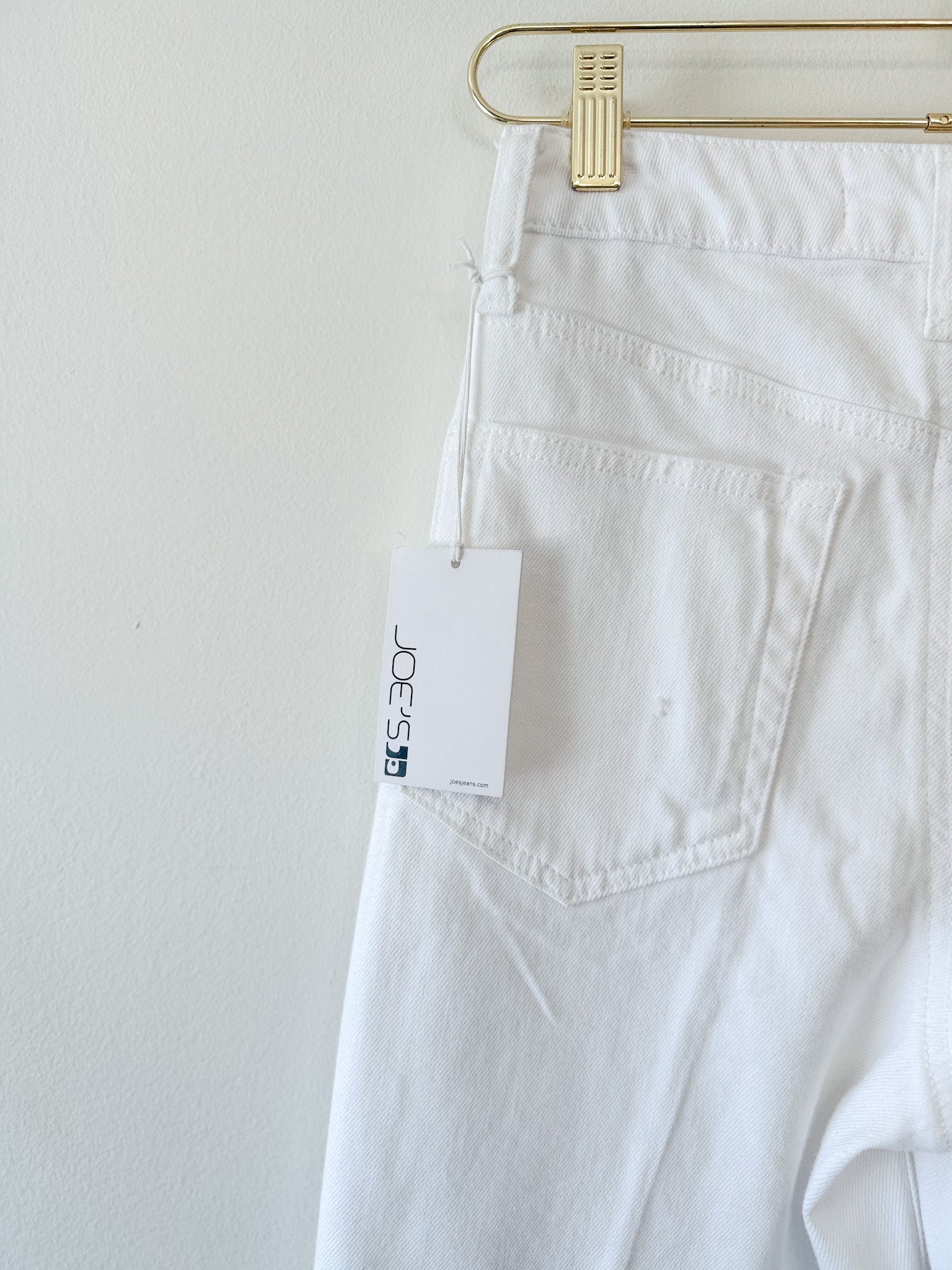 Introducing Joe's Jeans The Jane High Rise Straight Crop Jeans: made with shape-hugging stretch denim, these crisp white jeans are perfect for spring and summer. With a flattering high-rise and cropped raw hem, they'll keep you on trend. Zip fly and new with tags!