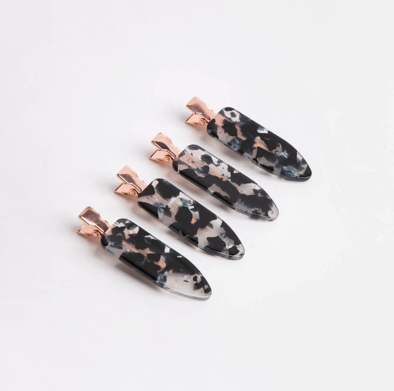KITSCH Eco-Friendly Creaseless Clips 4pc Set - Black Terrazzo