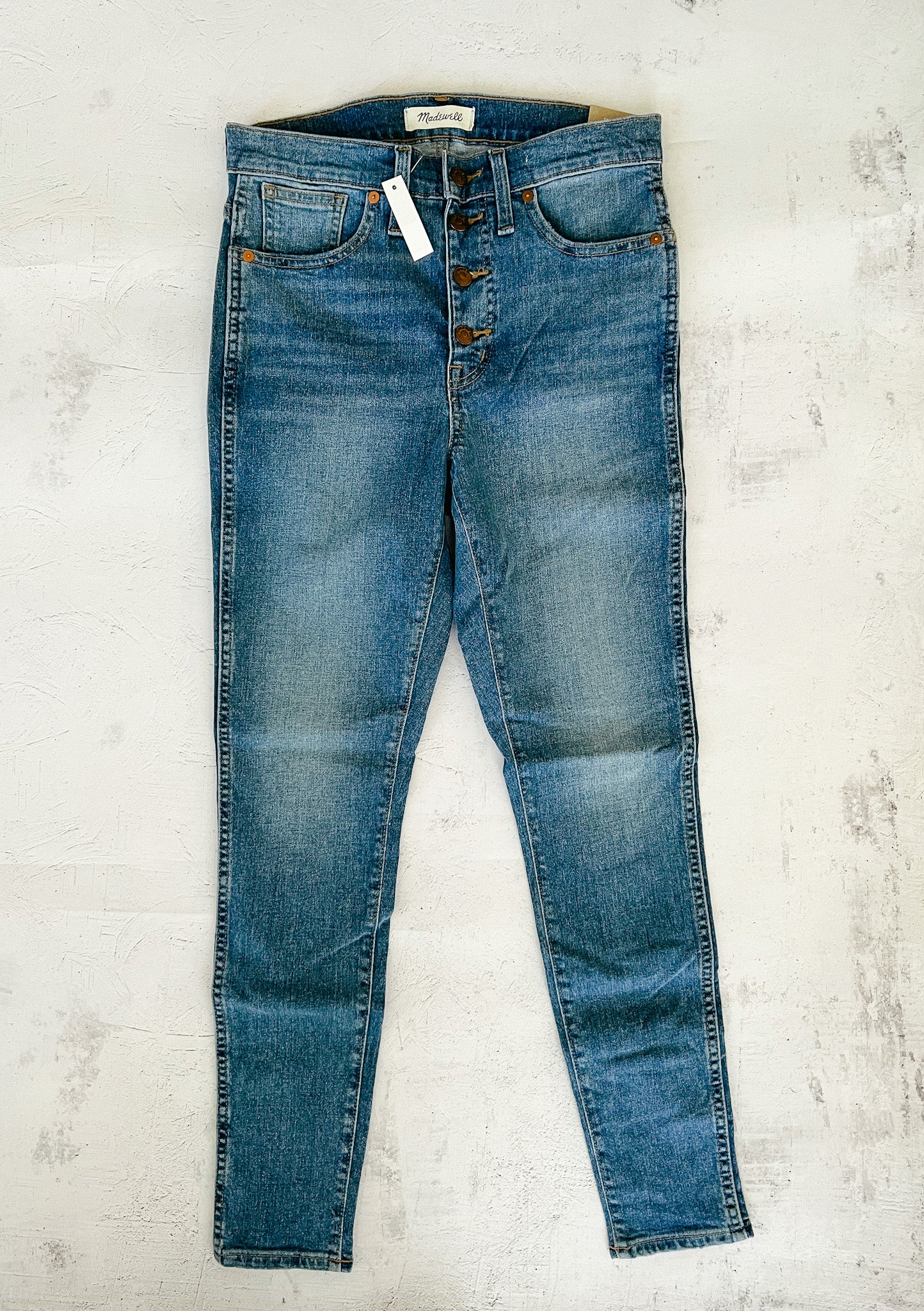 Madewell 10" High-Rise, Button Front Skinny Jeans in Dewitt Wash
