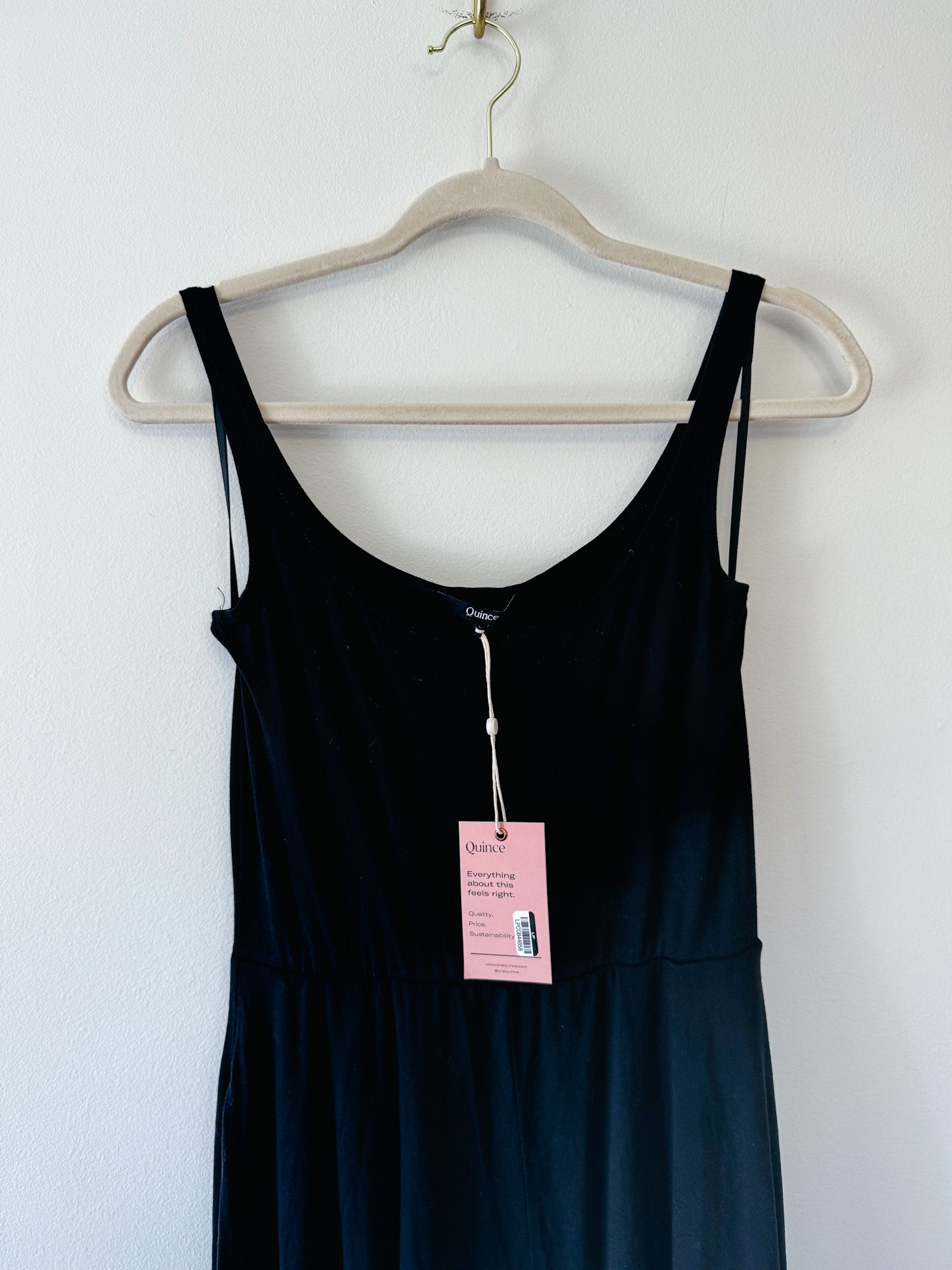Looking for a dress that flatters? Look no further! This scoop-neck, sleeveless fit and flare dress from Quince is made from soft, lightweight Tencel that moves with you throughout the day. And the best part? It has handy side-seam pockets, making it both comfy and practical. So go ahead and rock this LBD with a playful attitude, and when someone compliments you, you can casually reply, "Oh, thanks! It even has pockets!"