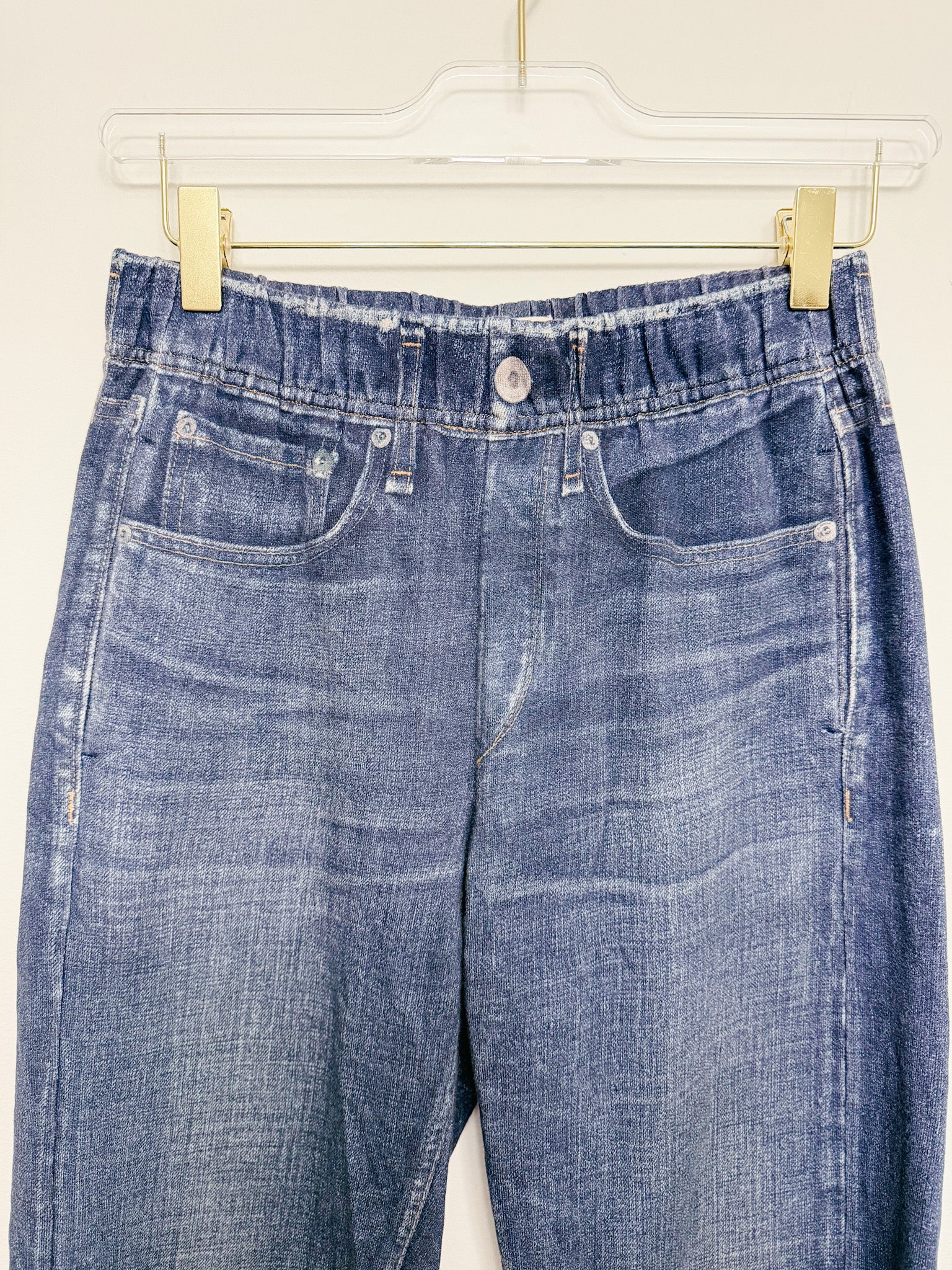 These jogger pants deliver effortless style with a convenient pull-on elastic waistband and functional side pockets. The mid-rise, slim silhouette pairs authentic denim aesthetics—digitally printed for a modern touch—with the superior comfort of jogger construction, making them your go-to choice for looking polished without sacrificing ease.