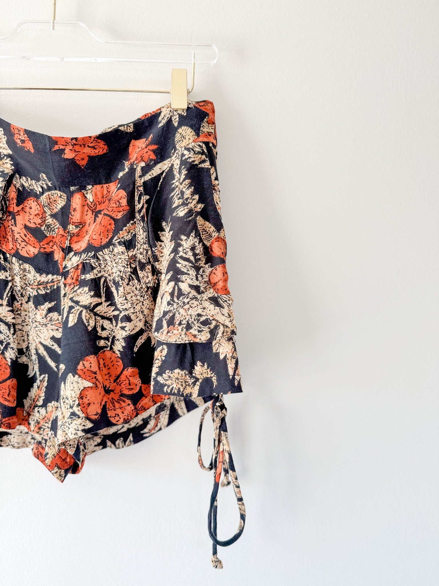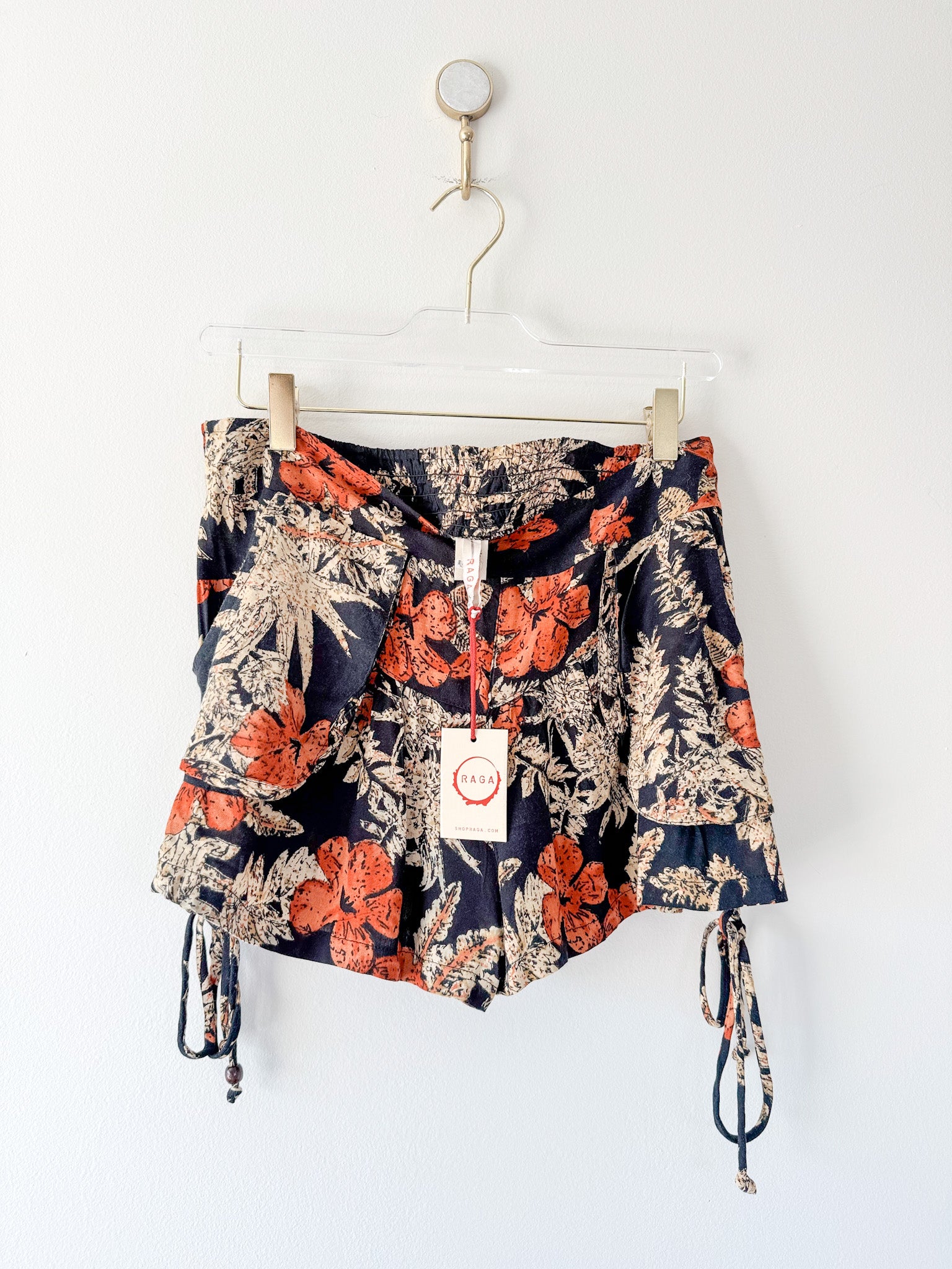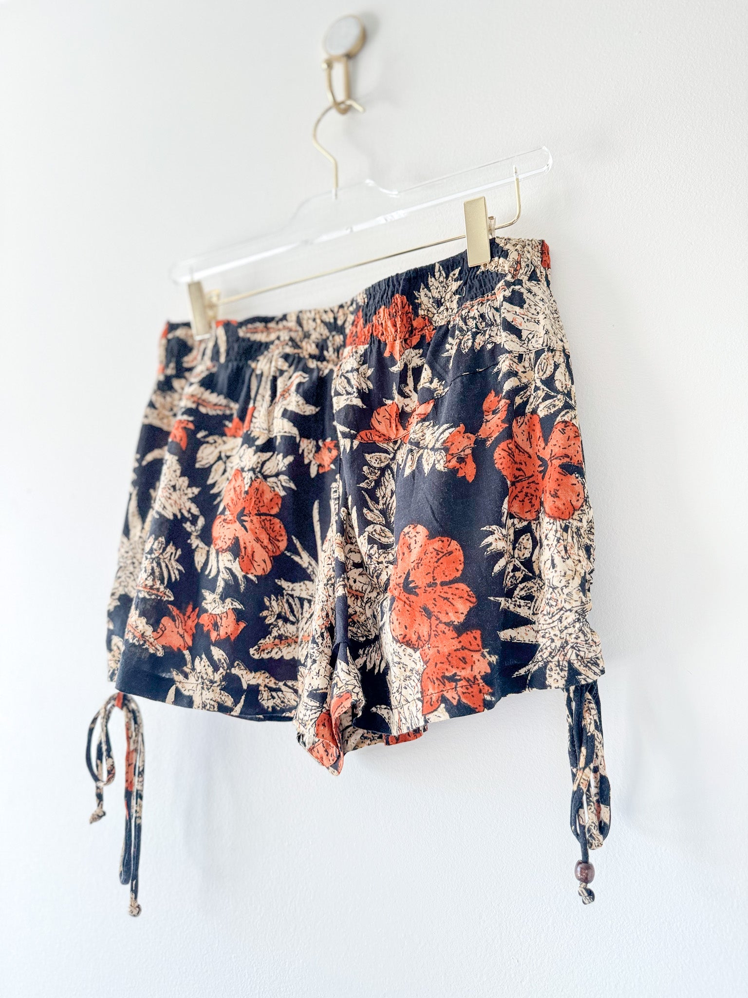 These Anthropologie RAGA Island Fever floral shorts are perfect for adding a pop of print to your wardrobe. They feature a pull-on closure, side ties with beads, and pockets, and are smocked at the back of the waist for a comfortable fit.