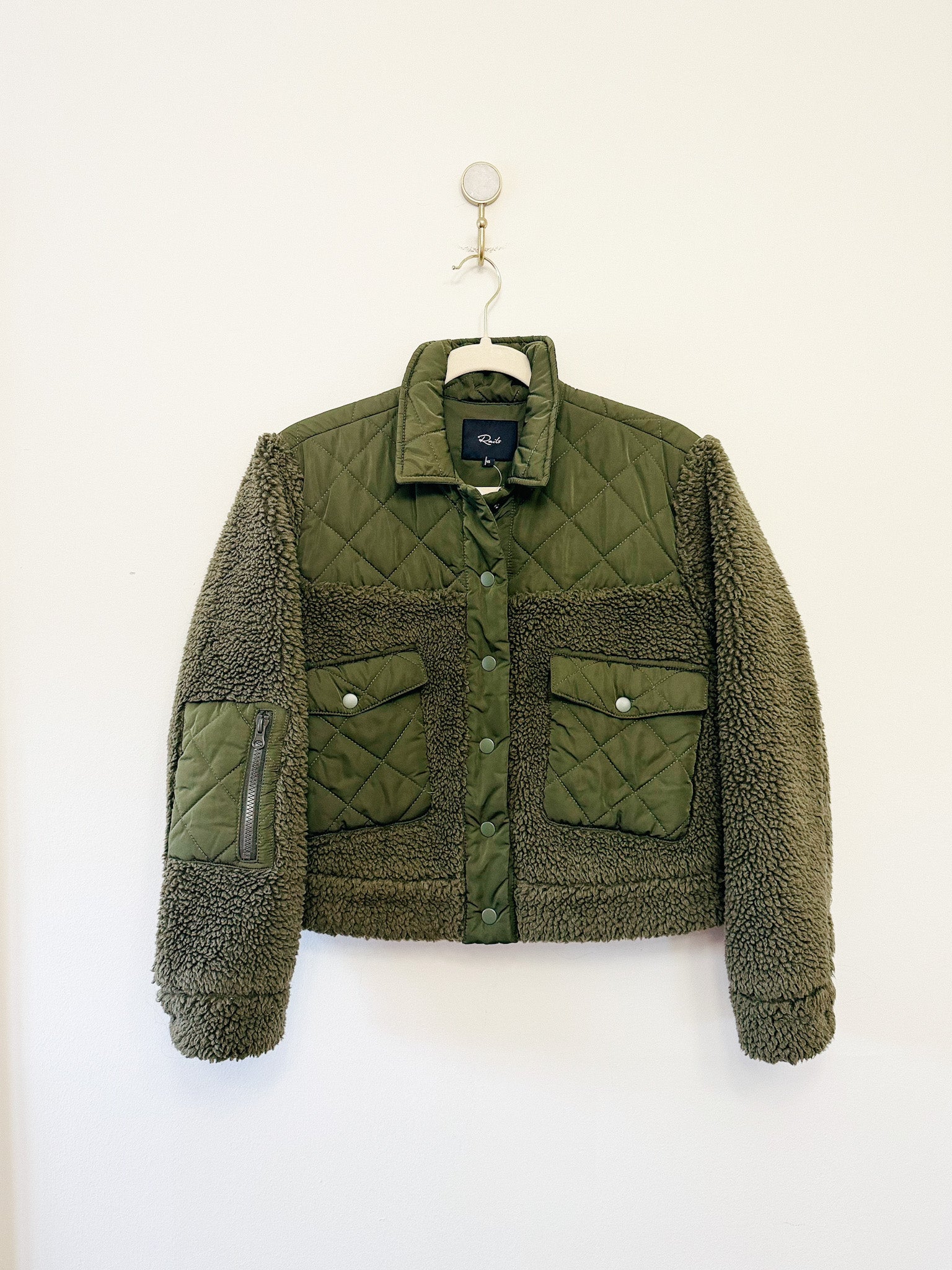 Stay cozy and cute in this charming Peyton teddy coat from Rails, perfect for when the chill sets in. It showcases a fun mixed media style with matching quilted nylon accents and a snap closure down the front.