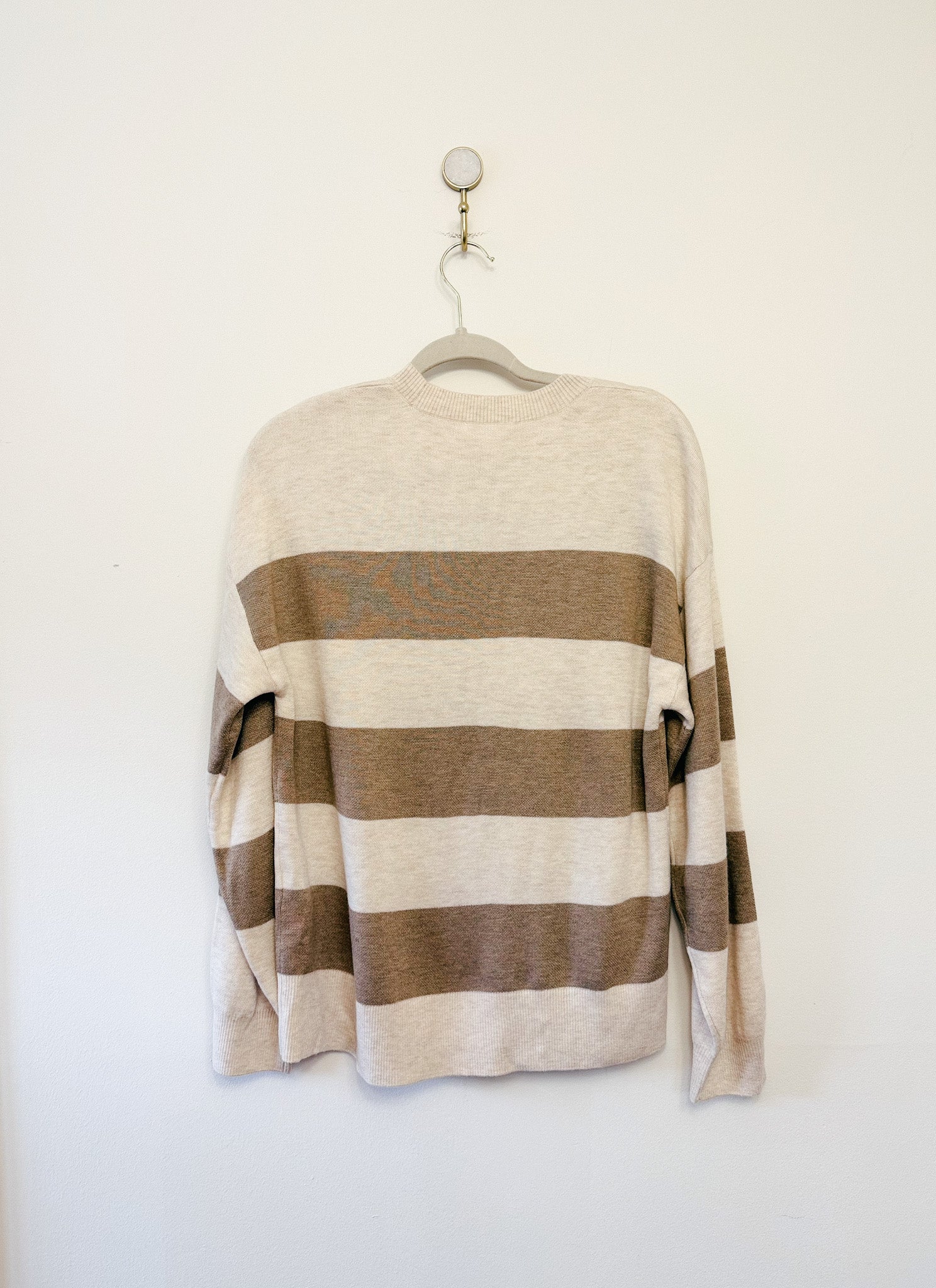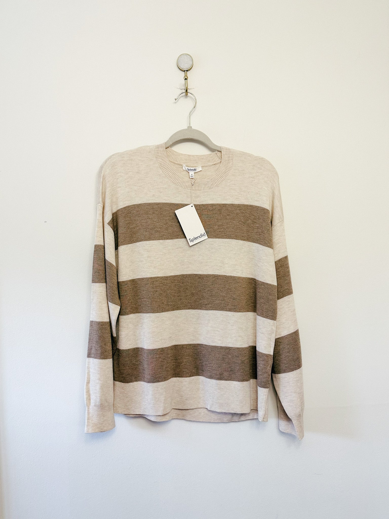 Splendid Libby Crewneck Sweater in Oat Stripe, Size Medium