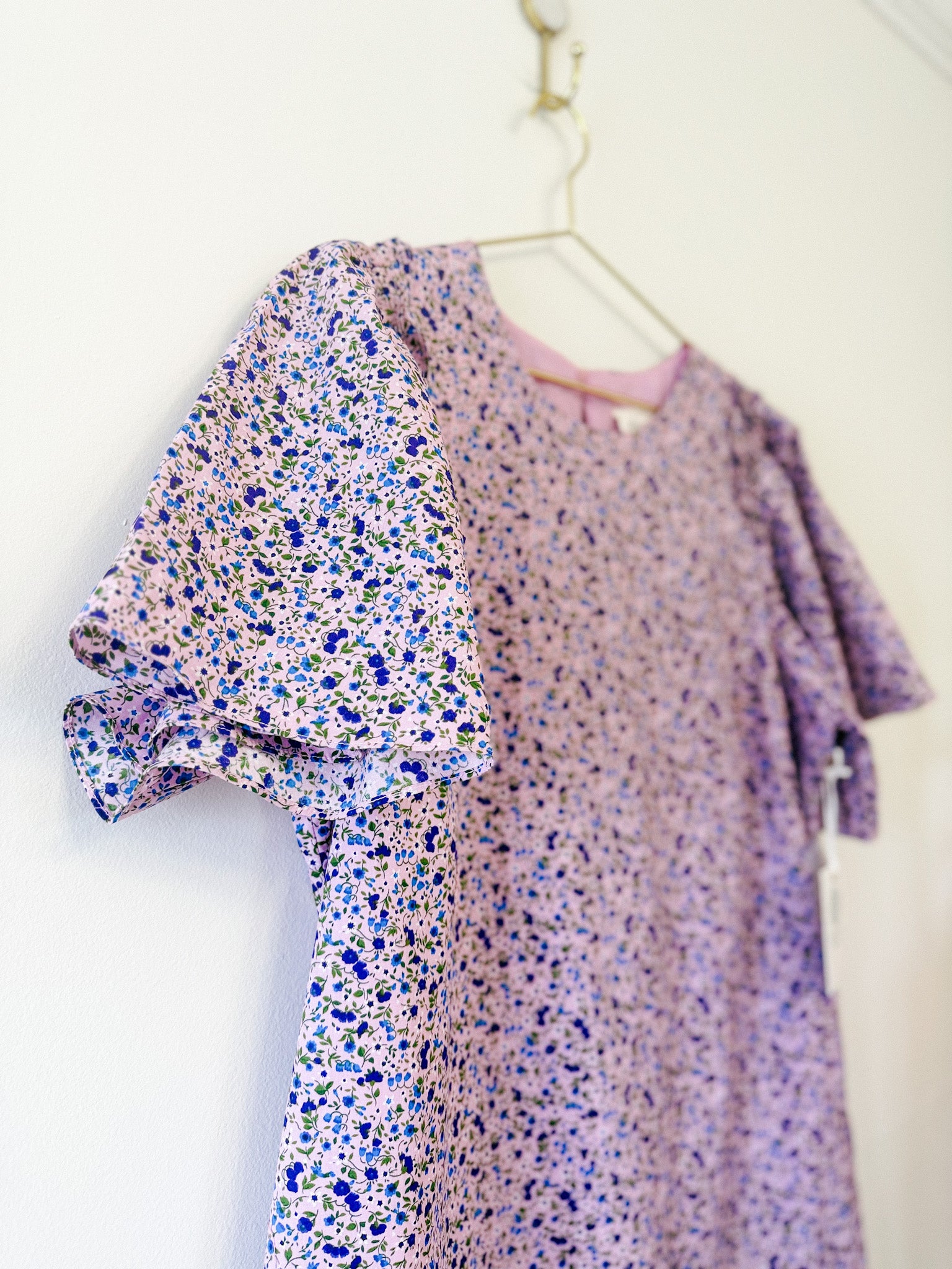 Step into effortless charm with this Tuckernuck Hyacinth House Viola Mini Dress, where whimsy meets everyday elegance. The delicate lilac floral print and flutter sleeves with ruffled edges capture that perfect blend of romantic and adventurous spirit.